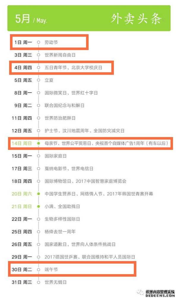 根據(jù)節(jié)假日的不同,要有針對性做好營銷工作,正確分析消費者的節(jié)日訴求。首先最重要的外賣不同于傳統(tǒng)餐飲店,從假日特點看,春節(jié)、”五一”、“十一”這三個長假也有不同特點。春節(jié)是傳統(tǒng)的喜慶節(jié)日,“五一”、“十一”則是休閑假日,當(dāng)然不同的地段,可能外賣消費者上班情況不一致,這個要考慮到。
